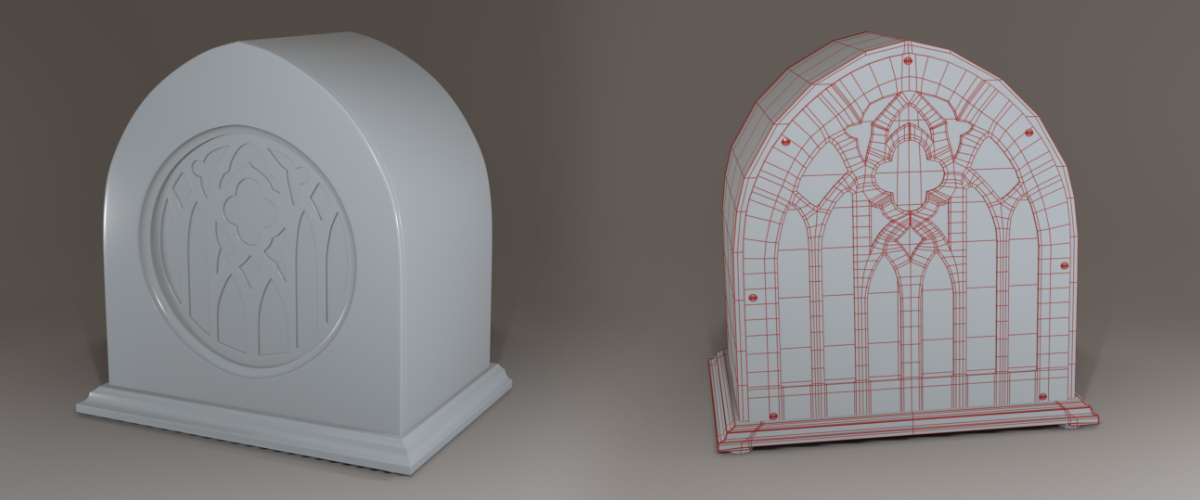 I created this interesting piece for the Modeling and Texturing 1 class with Tim Lewis. It’s from about the middle of the term, so we had some practice with hi-poly modeling but were still learning new techniques. The cruxes of the assignment were the front and back pieces featuring interconnected arches and loops.