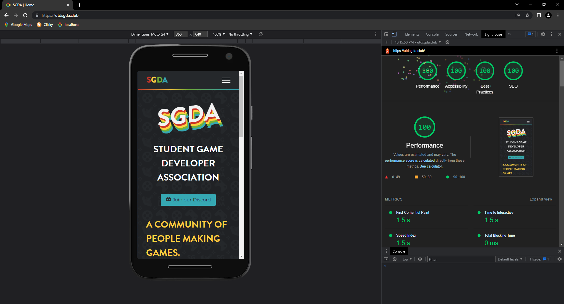 Lastly, I spent time optimizing the website’s request count, load speed, and accessibility with the help of Google Chrome’s LightHouse. The extremely small page-specific CSS files could be inlined using Jekyll’s Include functionality while remaining separate files; Sass’ @import is used to concatenate .scss fies at compile time to reduce the number .css files linked on a page; and minification of .html and .css files upon build further optimize files.